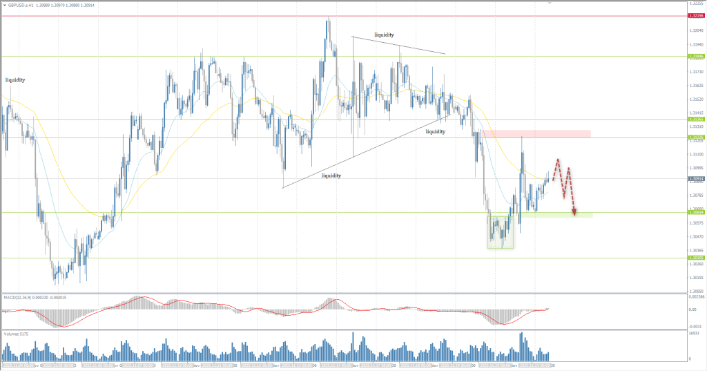 After Wednesday’s drop and rebound from support at 1.1502, a flat accumulation began forming. The upper boundary of this range is resistance at 1.1541. A breakout of this level on impulse will open the path to 1.1563 and higher, creating intraday buying opportunities. Until the level is broken, assess bearish reaction for short trades down to 1.1523.