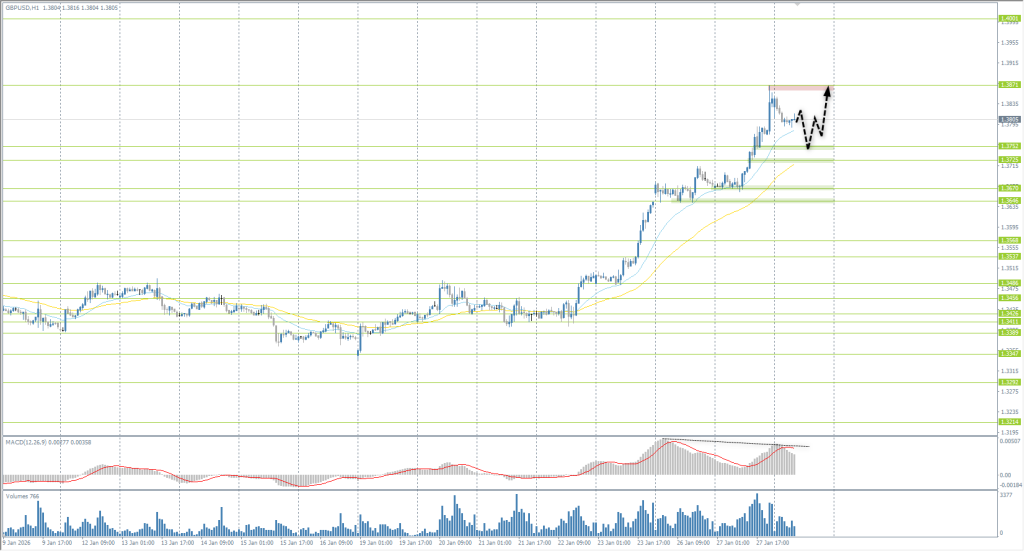 Following the euro, the British pound strengthened sharply as the dollar fell to three-year lows, reaching the 1.3871 resistance zone where early signs of profit-taking appeared. A divergence is forming on the MACD indicator, increasing the likelihood of a corrective pullback. However, there is currently no basis for a medium-term trend reversal. The market bias favors buyers, so the priority remains finding long opportunities on pullbacks. Key targets for assessing demand are the dynamic EMA lines and the 1.3752 support level, where a correction could provide an entry in the direction of the primary move.
