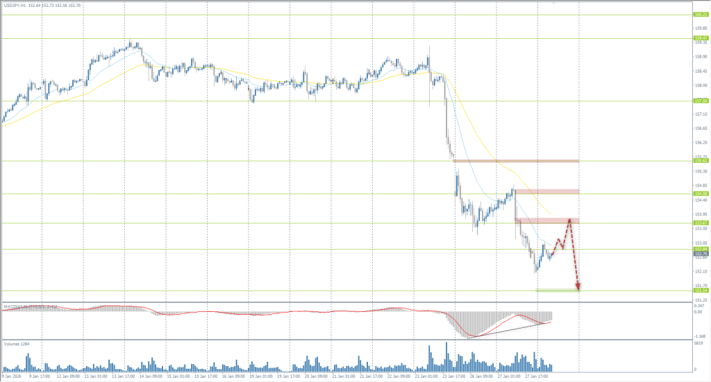 - Note: Consider short trades from resistance levels 152.84 or 153.67, but only with confirmation. Take-profit target is the 151.54 support level.