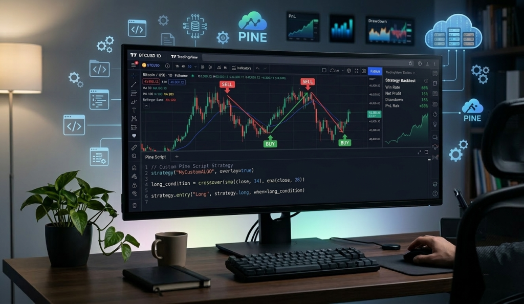 - أتمتة استراتيجيات التداول: كتابة شروط الدخول (Entry) والخروج (Exit) واختبارها على سنوات من البيانات التاريخية للحصول على إحصائيات دقيقة حول الربحية والمخاطر.