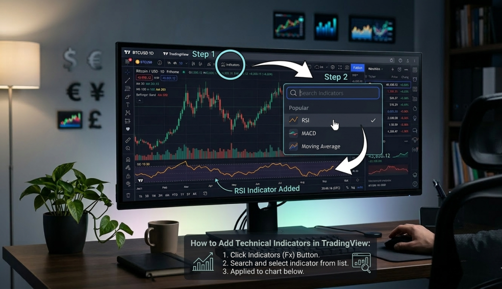 عملية إضافة المؤشرات في تردنج فيو مصممة لتكون سريعة وفعالة: