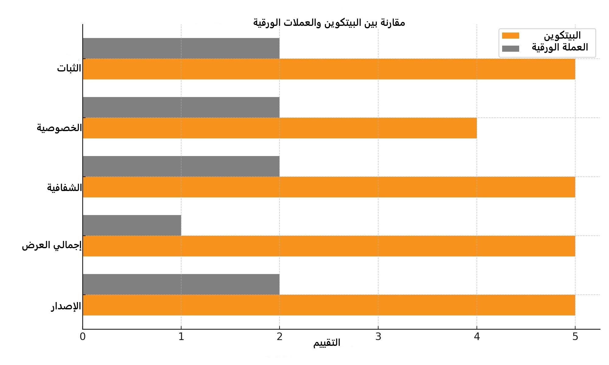 | السمة | البيتكوين | العملة الورقية |