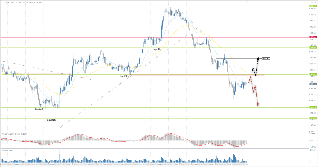From a technical point of view, the medium-term trend of the USD/JPY is downward. The Japanese yen formed a locked balance below 147.47, and now it is important for buyers to prevent the price from settling below this level again. Intraday, traders can consider buying from 147.47 with a target of 148.07. An impulsive settlement of the price below 147.47 would cancel the buying scenario.