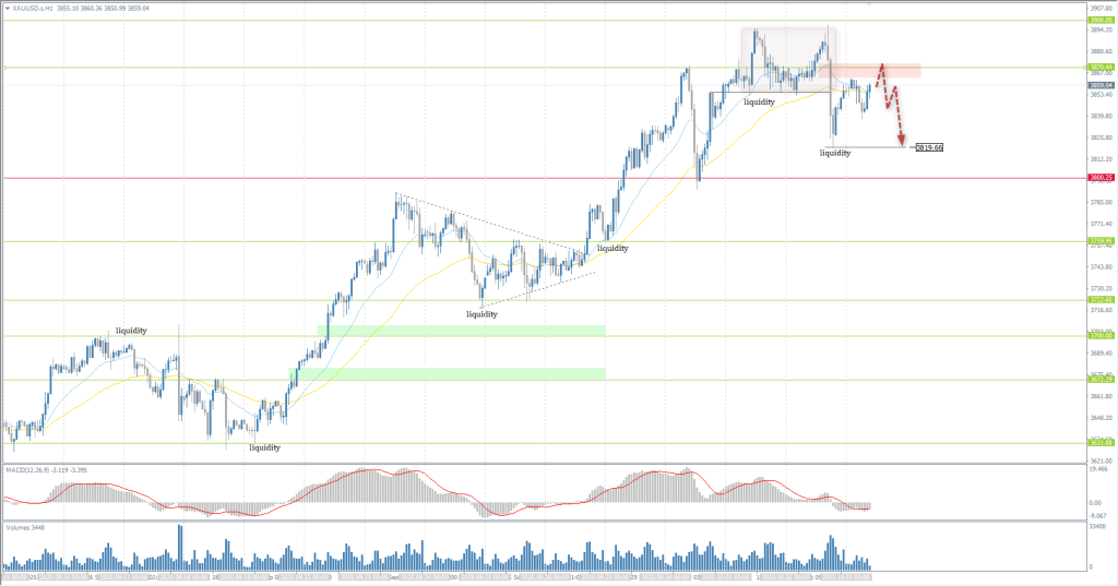 From the point of view of technical analysis, the trend on the XAU/USD is bullish. However, yesterday’s impulsive move down formed a locked balance above 3870, and this area will now act as a resistance zone. Intraday, traders can consider selling from the EMA lines or 3870, but with confirmation. Profit targets are 3840 and 3820. There are currently no optimal entry points for buying.