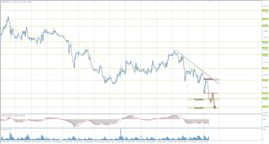 British pound showed a significant downward gap at the market open and continues to trade under pressure from the powerful strengthening of the US dollar. The intraday priority remains with the sellers, making it most logical to search for sell trades in the direction of the current momentum. Technically, for short positions, one should wait for a corrective pullback to the Moving Averages (EMA) or to the mirror resistance level of 1.3401. However, opening trades here requires confirmation. Regarding buy scenarios, traders’ attention should be focused on the liquidity zones below 1.3381 and 1.3347, where large orders to pick up the asset may be activated. Nonetheless, attempting to play against such an aggressive decline is extremely risky.