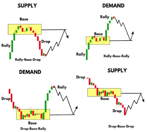 Sam Seiden, uno de los nombres más conocidos en el análisis de oferta y demanda, construyó su metodología precisamente sobre estas huellas. Identificó cuatro modelos clave: