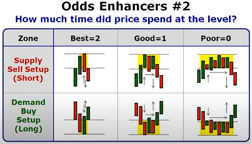 Lección: cuanto menos tiempo pasa el precio en un nivel, mayor es el desequilibrio entre la oferta y la demanda en esa zona. Dicho de otro modo, los niveles más fuertes son aquellos en los que el precio permanece el menor tiempo posible.