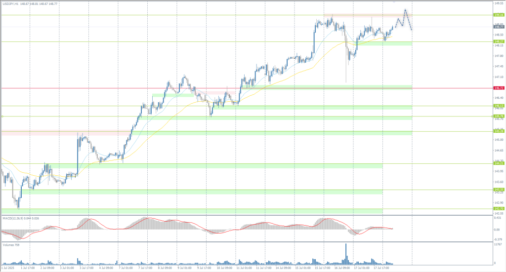 From a technical point of view, the medium-term trend of the USD/JPY is bullish. Currently, the price is forming a flat accumulation in the range of 148.27–149.16. Intraday, the bias is towards buyers, so the price will tend to test liquidity above 149.16. Buy trades can be considered from the EMA lines or from the support level of 148.27. Sell trades can be considered if sellers take the initiative at the resistance level of 149.16.
