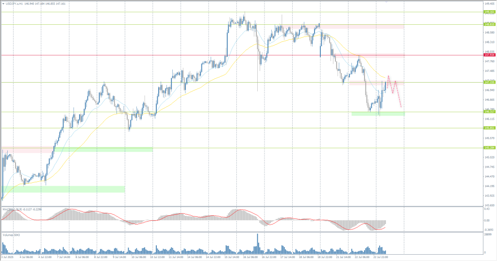 From a technical point of view, the medium-term trend of the USD/JPY has changed to downward. The price has consolidated below the priority change level, but has reached the support level of 146.32, where buyers have taken the initiative. Sell trades can be considered from the resistance level of 147.15, provided there is a reaction from sellers. There are currently no optimal entry points for buying.