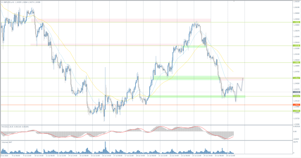 The British pound fell to 1.347, retreating further from its two-week high of 1.358, as recent UK data shifted market focus from inflation to growth concerns. Retail sales rose only 0.9% in June after a sharp 2.8% decline in May (revised lower). Core sales (excluding autos and fuel) grew just 0.6%, missing the 1.2% expectations. Alongside disappointing PMI readings, this supports expectations that the Bank of England will prioritize growth support over inflation control. Markets are increasingly pricing in a 25 basis point rate cut in August, with another expected by year-end.