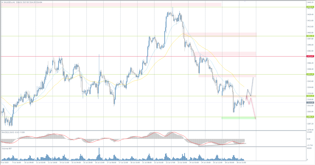 On Tuesday, the price of gold fluctuated around $3,310 per ounce, close to a three-week low, as signs of easing trade tensions and a strengthening US dollar reduced the metal’s appeal. Investors are closely watching the ongoing negotiations between the US and China amid expectations of a 90-day extension of the tariff delay, which expires on August 12. Negotiations with other major trading partners, including Canada and South Korea, are still ongoing. Meanwhile, the US Federal Reserve is scheduled to hold a meeting this week and is expected to leave interest rates unchanged, although markets continue to price in a possible rate cut in September.