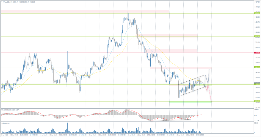 On Wednesday, the price of gold fluctuated around $3,320 per ounce, remaining close to a three-week low, as easing trade tensions reduced the metal’s appeal as a safe haven. Investors are also closely watching the FOMC decision, which is due to be announced today. Although the Fed is widely expected to leave rates unchanged, markets will focus on Chairman Powell’s press conference for clues about a possible rate cut in September. Attention is also turning to a number of key US economic reports. This week, job openings came in slightly below expectations, while consumer confidence rose.