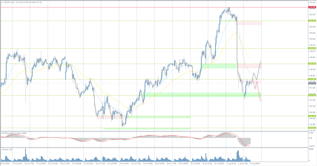 From a technical point of view, the medium-term trend of the USD/JPY has changed to a downtrend. On Friday, the yen sharply strengthened on the back of the decline in the dollar index and consolidated below the level of priority change. Currently, the price is testing the resistance level at 147.89, and it is important to evaluate the price action here. Seller initiative from 147.89 will open up selling opportunities. An impulsive breakout of 147.89, on the contrary, will open the price to 148.54 and higher.
