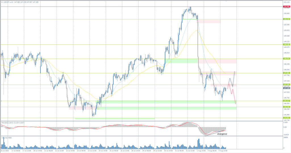 From a technical point of view, the medium-term trend of the USD/JPY is bearish. The yen reached the support level of 146.63 on Monday, where buyers showed moderate initiative. The price is now aiming for resistance at 147.36, where it is important to assess the price action. A breakout and consolidation above this level will open the price to 147.89. If sellers respond to 147.36, selling to 146.63 and below could be considered.