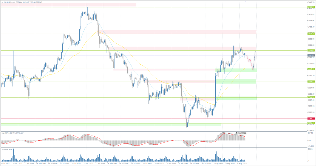 From the point of view of technical analysis, the trend on the XAU/USD has changed to an upward trend. The bullion price reached the resistance level of 3377 yesterday. Considering MACD divergence, there is a high probability of a corrective wave to 3351. Inside the day you can look for sell trades, but with a short stop loss. For buy deals, we should evaluate the price reaction at 3351.