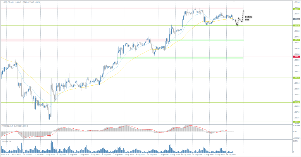 In terms of technical analysis, the trend on the currency pair GBP/USD is bullish. The British pound is forming a flat accumulation with boundaries of 1.3520–1.3586. The bias remains with buyers, so intraday trades can be considered from 1.3520, but with confirmation. There are currently no optimal entry points for selling.