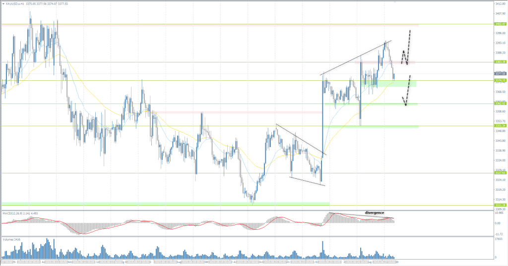 From the point of view of technical analysis, the trend on the XAU/USD is bullish. Yesterday, buyers reacted to the support level of 3351, where the price consolidated above 3383, potentially opening the way to 3402. However, given the MACD divergence, a correction to 3362 is possible. Buy deals in continuation of the trend should be considered from 3362, or after the price consolidates above 3383 again. There are no optimal entry points for sales at this time.