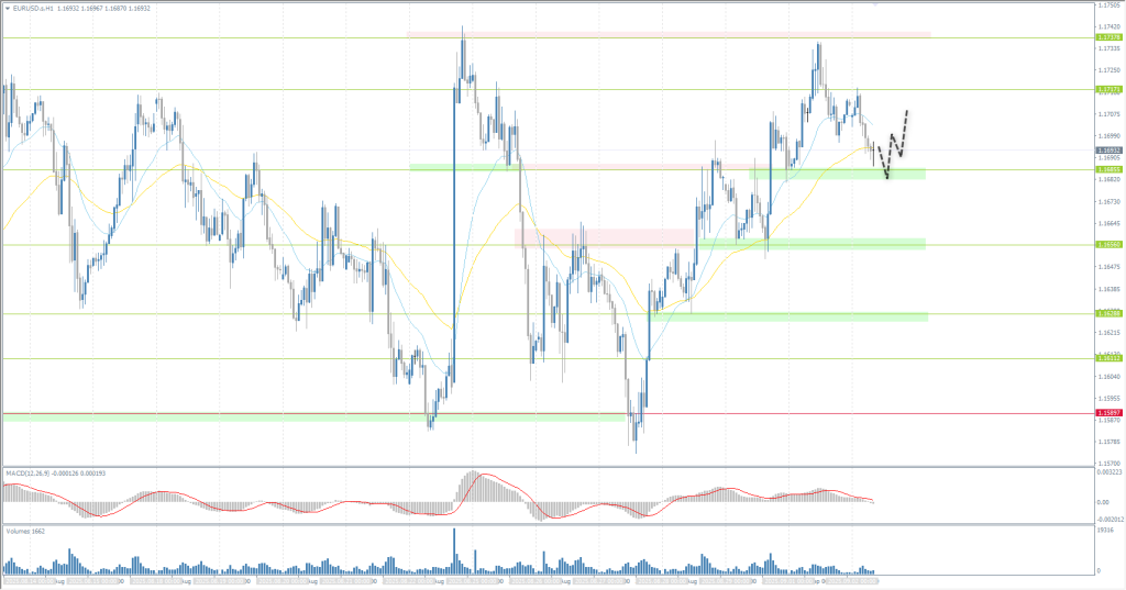 The EUR/USD currency pair’s hourly trend is bullish. The euro has corrected to the support level of 1.1687, where buy trades can be considered if buyers react. It is important for buyers not to let the price settle below 1.1687. Otherwise, the price may sell off to 1.1656.