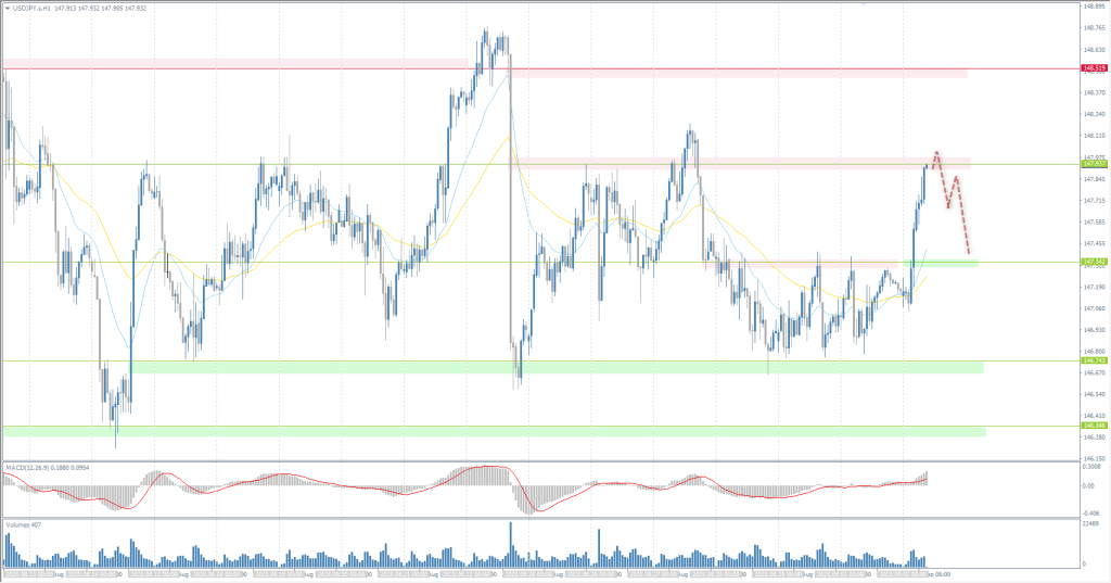 From a technical point of view, the medium-term trend of the USD/JPY is bearish. The Japanese yen unexpectedly fell on Tuesday. The price consolidated above 147.34 and has now reached the resistance level of 147.94. It is very important for sellers not to let the price consolidate above this level, as this could trigger a further rise in quotes to 148.52. Intraday, sell trades can be considered, provided that sellers react to the 147.94 level.