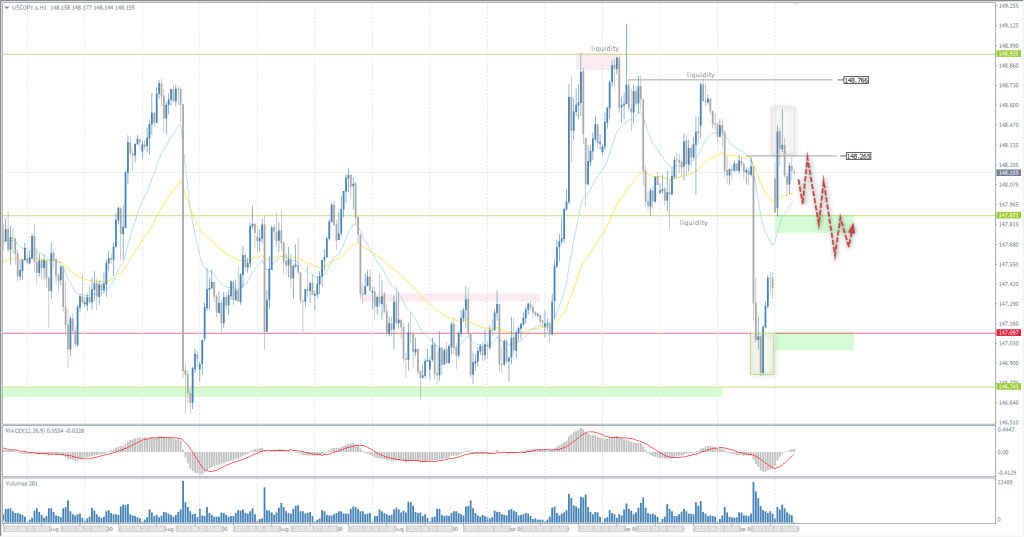 From a technical point of view, the medium-term trend of the USD/JPY is bullish. On Friday, the yen fell below 147.09, but after a slight accumulation, it sharply returned above that level. On Monday, a price gap formed after news from Japan, and now the price will seek to close this gap. Intraday, you can consider selling from 148.26 with a target of 147.87. There are currently no optimal entry points for buying.