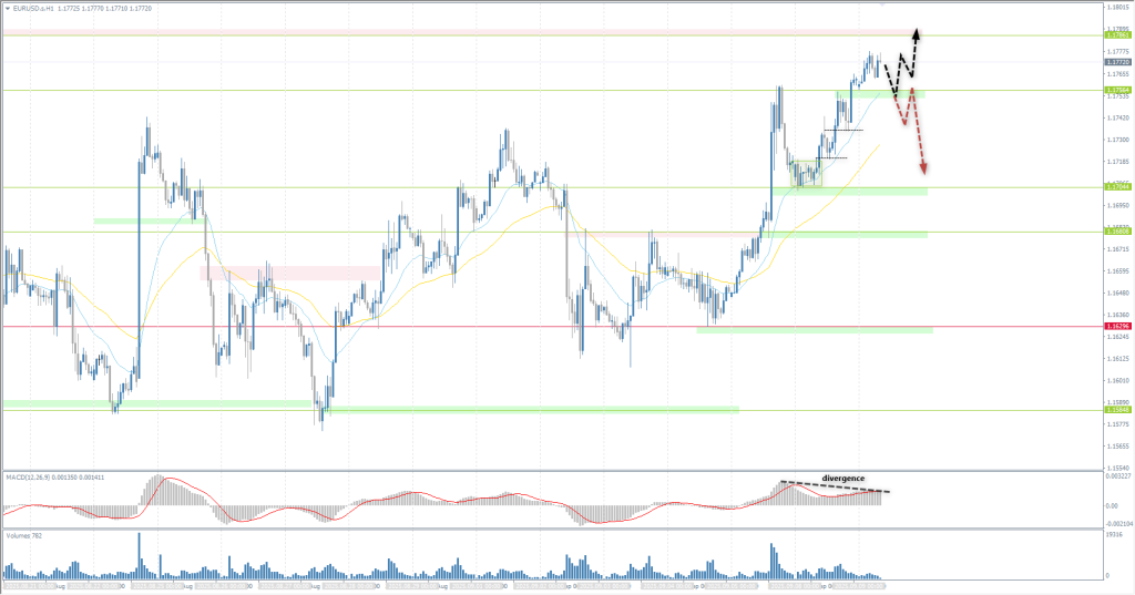 The EUR/USD currency pair’s hourly trend is bullish. Yesterday, the euro price updated its weekly high, failing to reach the support level of 1.1680. At the moment, the price is forming a flat accumulation above 1.1756. It is important for buyers to keep the price above this level to maintain the rally. A sharp drop in the price below 1.1756 could trigger a sell-off, which is also confirmed by the formation of a MACD divergence.