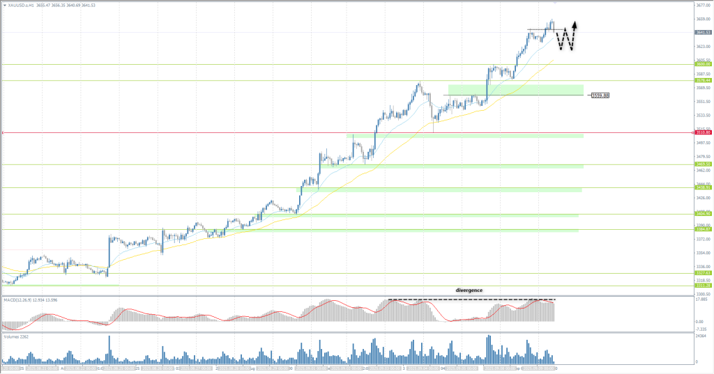 From the point of view of technical analysis, the trend on the XAU/USD is bullish. Gold continues to rally. However, the MACD indicator points to a cumulative divergence, which increases the likelihood of a corrective movement. For sell deals, it is necessary to wait for liquidity to be captured above resistance levels so that there is fuel for the price to correct. For buy deals, it is also worth looking for false breakouts below to support maintaining the rally.