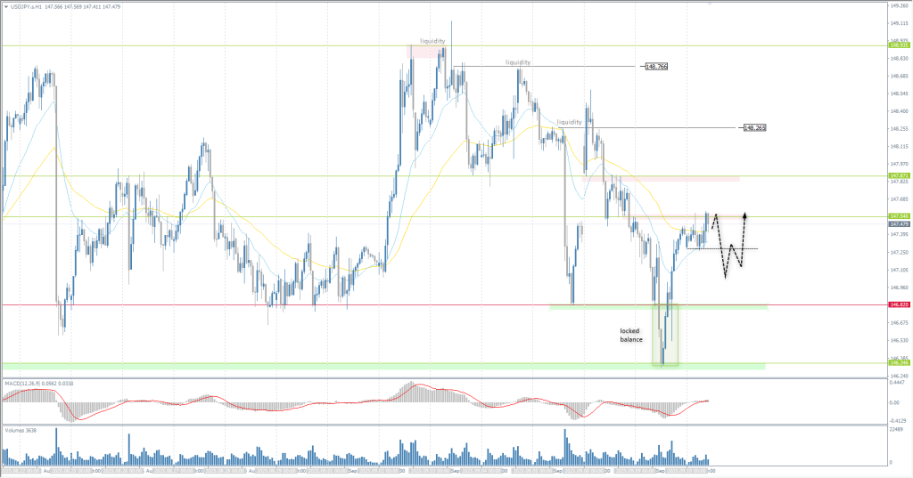 From a technical point of view, the medium-term trend of the USD/JPY is still bullish. Yesterday, the price attempted to consolidate below the priority level, but after forming a balance, the price impulsively returned above the level, which led to the formation of a locked balance below 146.82. Currently, the price has reached the resistance level of 147.54, where sales are possible, but for a full reversal, it is necessary to form a similar balance above the resistance level, so intraday, the bias remains with buyers.