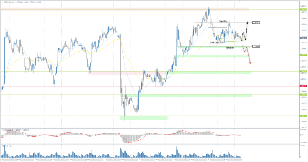 In terms of technical analysis, the trend on the currency pair GBP/USD is bullish. After testing liquidity above 1.3585, the British currency corrected to the EMA lines and is now forming a flat accumulation below the intermediate level of 1.3556. Consolidation of the price above the EMA lines will open up opportunities for buy deals with a target of 1.3556 and above to 1.3585. Pay attention to the price rejection zone. If the price closes impulsively below this zone, it could trigger a sharp sell-off.