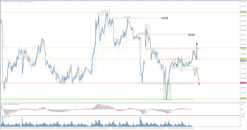 From a technical point of view, the medium-term trend of the USD/JPY is still bullish. The price has pulled back from the resistance level of 147.54, and buyers are now trying to prevent the price from falling below 147.25. A breakout and consolidation above 147.54 will open up opportunities for buy deals up to 147.87 and above. A move below 147.25 will trigger a sell-off to the locked balance of 146.82.