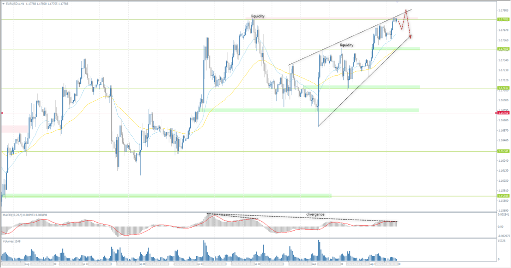 The EUR/USD currency pair’s hourly trend is bullish. After forming a two-day balance, the price jumped impulsively and reached the resistance level of 1.1778. It is worth being cautious with buy deals here, as several factors indicate the presence of counter-sales. For purchases, it is best to consider the support level of 1.1746 or the EMA line, but with confirmation.