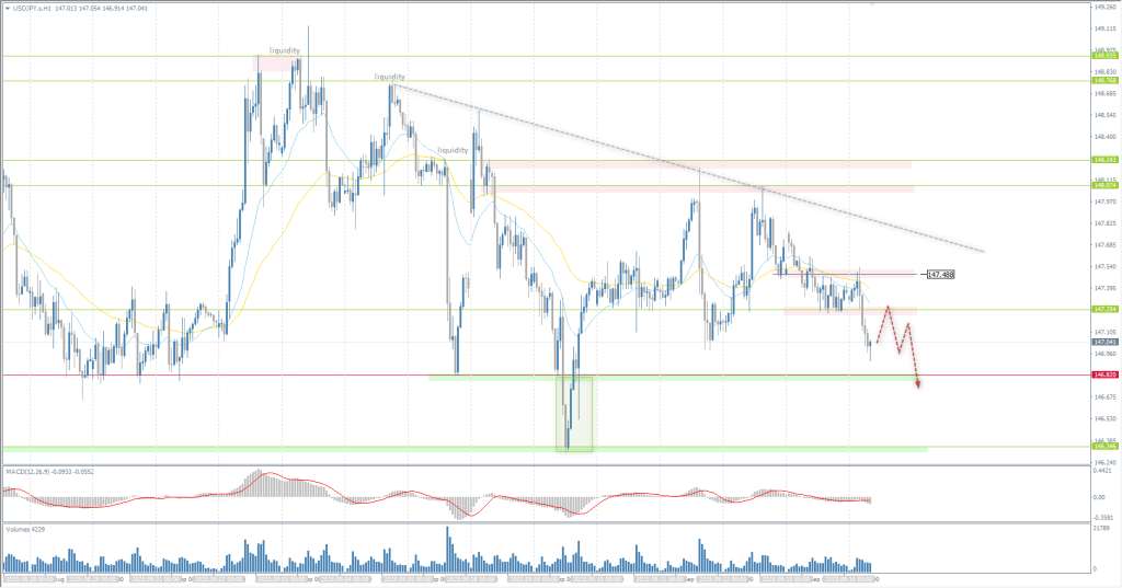 From a technical point of view, the medium-term trend of the USD/JPY is bullish, but the intraday bias is bearish. Yesterday, the price failed to consolidate above 147.88, after which there was a breakdown on the impulse of the 147.25 support level. For the price to grow, it is necessary to form a locked balance below the support level. Until this happens, intraday sales from 147.25 should be considered with a target of 146.82, which is the priority change level and the boundary of the previous locked balance.