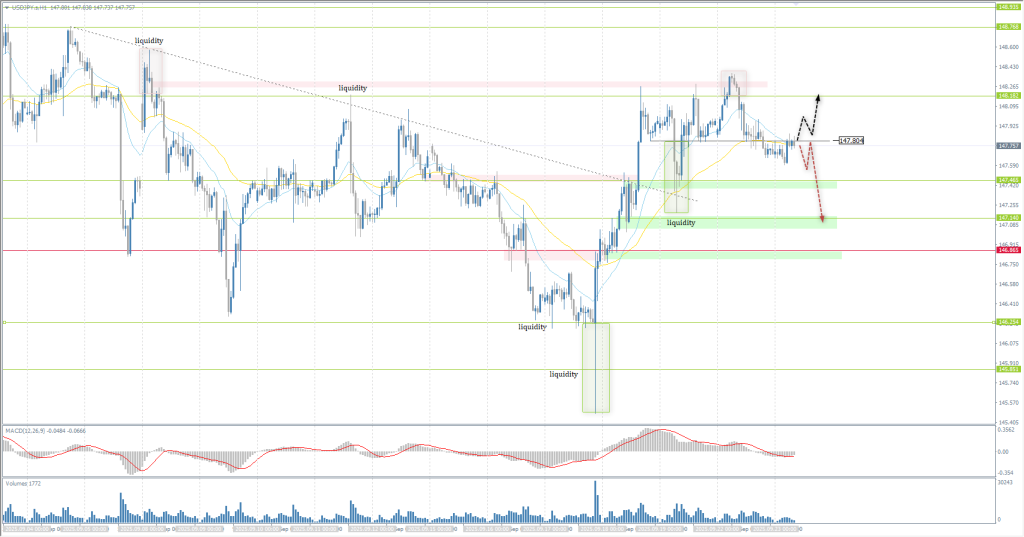 From a technical point of view, the medium-term trend of the USD/JPY is upward. All eyes are on the 147.80 level. If sellers manage to keep the price below this level, traders can expect to sell to 146.46 or 147.14. However, if buyers impulsively push the price above 147.80, another locked balance will form, opening up opportunities for buy deals to 148.18 and above.