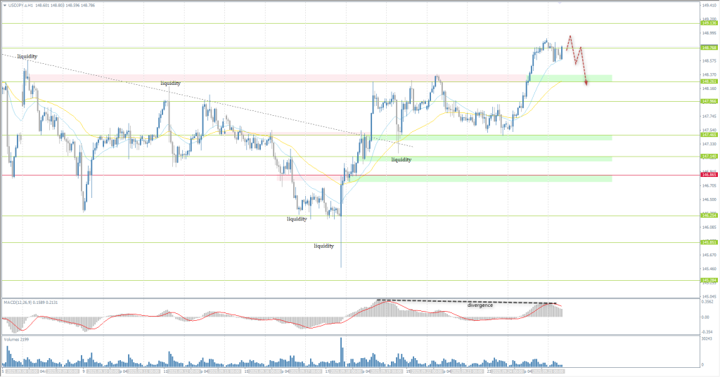 From a technical point of view, the medium-term trend of the USD/JPY is upward. The price has reached a strong resistance zone of 148.76-149.13. Given the MACD divergence, a correction to 148.26 is possible here. Intraday, sales to this level can be considered. There are currently no optimal entry points for buy deals.