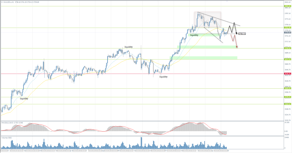 From the point of view of technical analysis, the trend on the XAU/USD is bullish. Gold appears to have formed a locked balance above 3750, and this zone will now act as an area of resistance. For the bullish rally to resume, we need to see a breakout above 3750 and, preferably, consolidation above the downtrend line. Until that happens, intraday selling can be considered if the price consolidates below 3736 again.