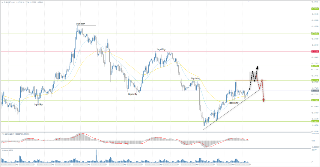 The EUR/USD currency pair’s hourly trend is downward. The euro secured a close above 1.1702 yesterday, leading to a rally toward the 1.1754 resistance level. Today, traders’ focus is on this level. A break above it on an impulse move will clear the path for the price to reach 1.1786 and higher. If, after breaking 1.1754, the price quickly reverses back on an impulse, it would form trapped positions above the level and open up selling opportunities.