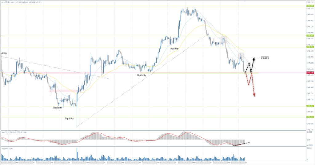 سناریوی جایگزین:if the price breaks through the support level of 147.50 and consolidates below it, the downtrend will likely resume.
