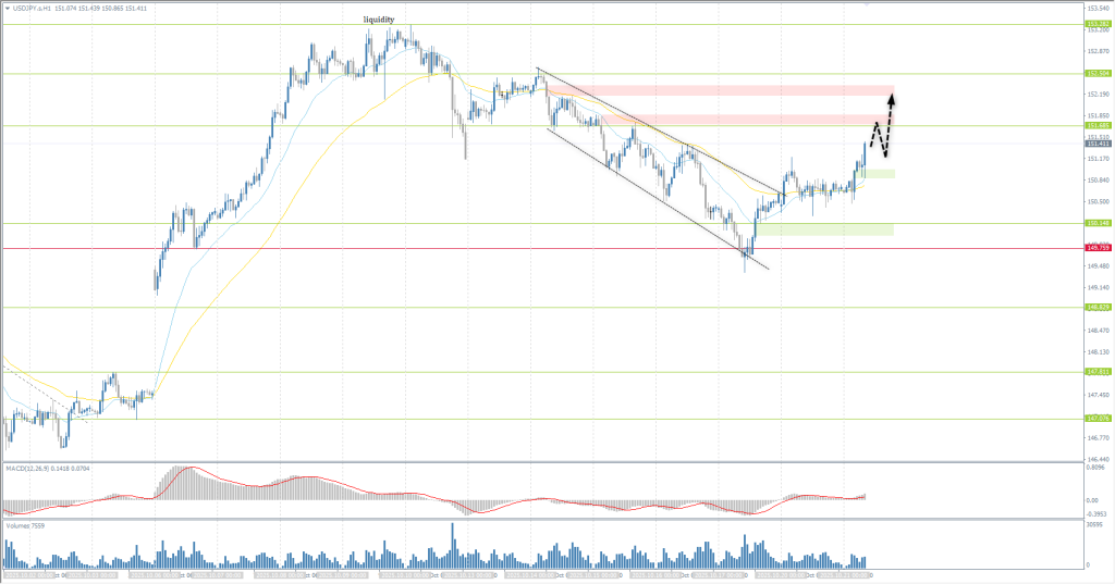 The medium-term trend is bullish. The price is likely to test the resistance level of 151.68. Intraday, you can consider buying trades up to this level. It is best to do this from the EMA lines. There are currently no optimal market conditions for selling trades.