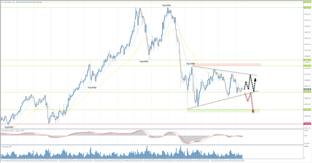 Technically, the medium-term trend is bullish. Gold continues to form a wide-volatility flat. The price is compressing into a triangle pattern, which precedes an impulsive movement. While the price remains within the range, it is best to look for buys from the lower border and sells from the upper border. A breakout and consolidation below 4065 could lead to a sharp sell-off to 4000.