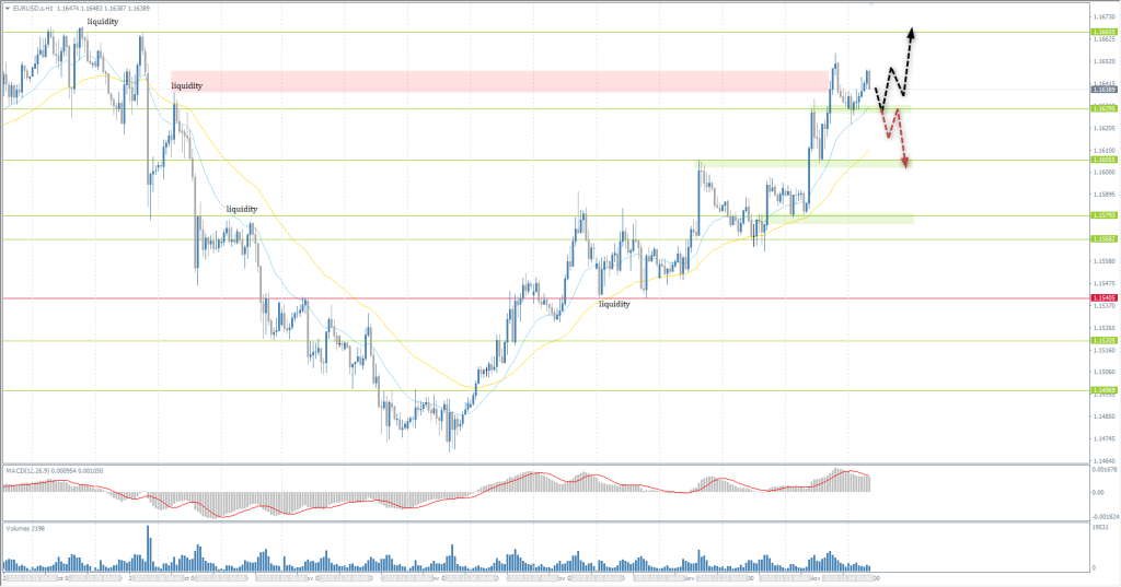 The hourly trend for EUR/USD has shifted upward. The price continues to rise steadily, with each rebalancing leading to impulsive upward moves. Intraday, buying opportunities can be sought from support at 1.1630, but with confirmation, as MACD divergence points to a possible technical correction. If the price consolidates below 1.1630, expect a correction to 1.1606.