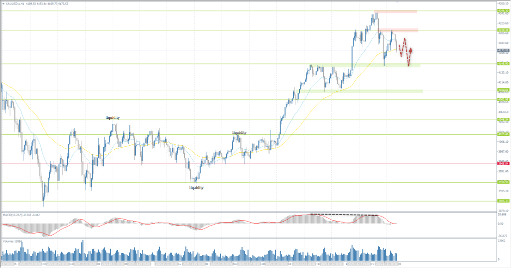 Technically, the medium-term is bullish. Yesterday, gold corrected to support at 4148, where buyers showed initiative. Sellers, in turn, formed resistance at 4210. Intraday bias favors bears, with a high probability of retesting 4148 and setting a new low. Buying opportunities are best sought from 4148, but with confirmation of a bullish reaction. A break and consolidation below 4148 will open the path to 4100.