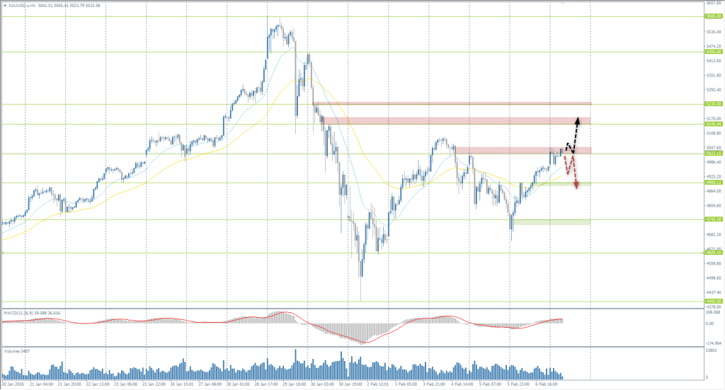 On Monday, gold opened with a small gap that was quickly closed, after which the price moved toward key resistance near 5022. At this point, the market is in a decision phase, and further movement will depend on the participants’ reaction to this level. A hold above 5050 will indicate buyer readiness to continue the move, opening potential toward 5145. Otherwise, increased seller activity from 5022 could lead to a corrective decline with a near-term target of 4900, where the market may again seek support.