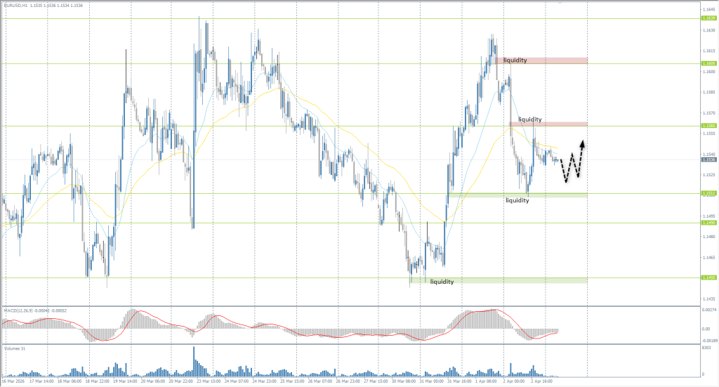 The European currency has flattened within the 1.1511-1.1560 range and will likely remain there until the end of the week. Low volatility is expected due to exchange closures in Europe, but it is worth noting that the NFP labor market report will be released. For buying, focus on the 1.1511 support level, while for selling, the relevant level remains 1.1560.