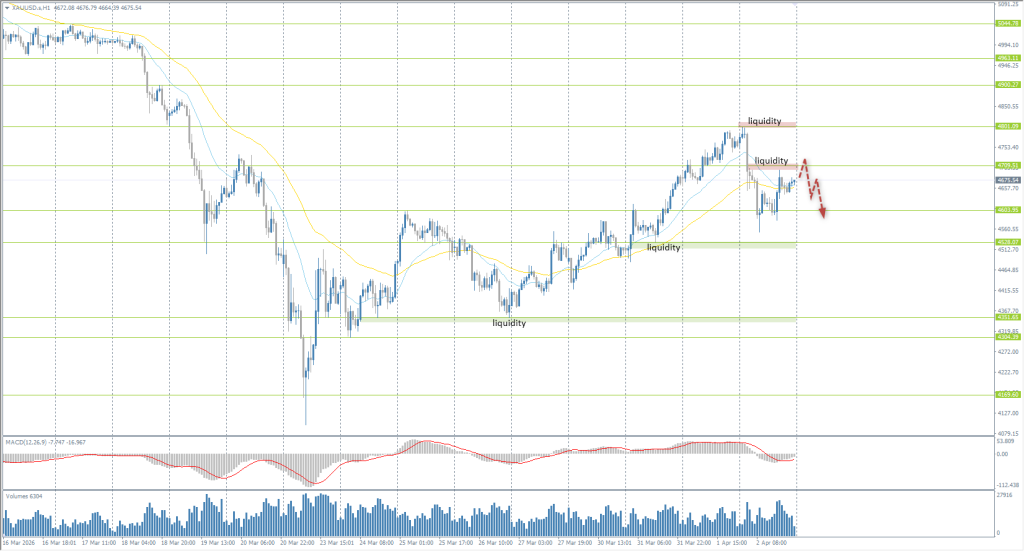Today, the metals exchange is closed, meaning gold has a “day off.” If the price opens around the same levels on Monday, the 4709 resistance level can be considered for selling. For buying, the relevant support level remains 4528.