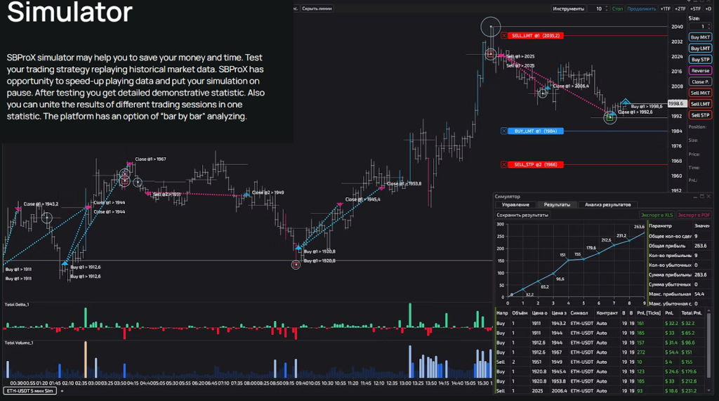Keunggulan Forex Tester adalah kemampuannya untuk mensimulasikan trading sedekat mungkin dengan kondisi nyata: memperhitungkan spread, komisi, kecepatan eksekusi, dan berbagai jenis order. Anda bisa menelusuri pasar bilah demi bilah, menganalisis trading, mencatat jurnal, dan mendapatkan statistik yang terperinci.