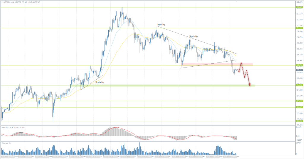 Technically, price impulsively broke below the narrowing triangle, shifting intraday bias to sellers. For sell deals, consider resistance at 155.73 with confirmation. Profit target: 155.00. No optimal buy entries at present.