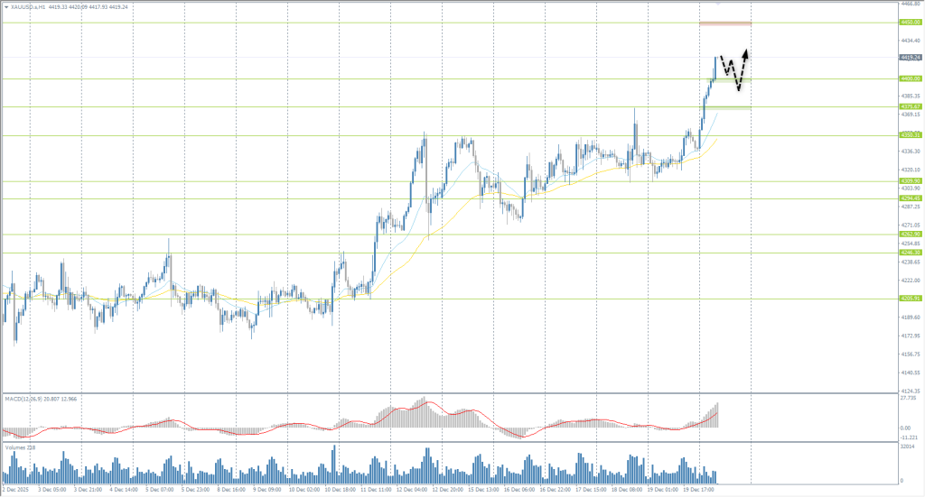On Monday, the gold price surpassed the $4,400 per ounce mark for the first time, reaching an all-time high. The rally was supported by weaker-than-expected US macroeconomic data, which fueled expectations for a more accommodative Fed policy and potential additional interest rate cuts – a key support factor for precious metals. On Thursday, the US core CPI for November showed inflation slowing to its lowest level in 4.5 years, and on Friday, the University of Michigan’s Consumer Sentiment Index for December was unexpectedly revised downward.