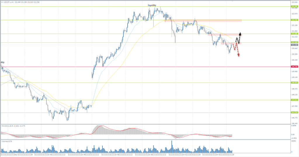 สถานการณ์ของทางเลือก:if the price breaks through the support level of 149.95 and consolidates below it, the downtrend will likely resume.