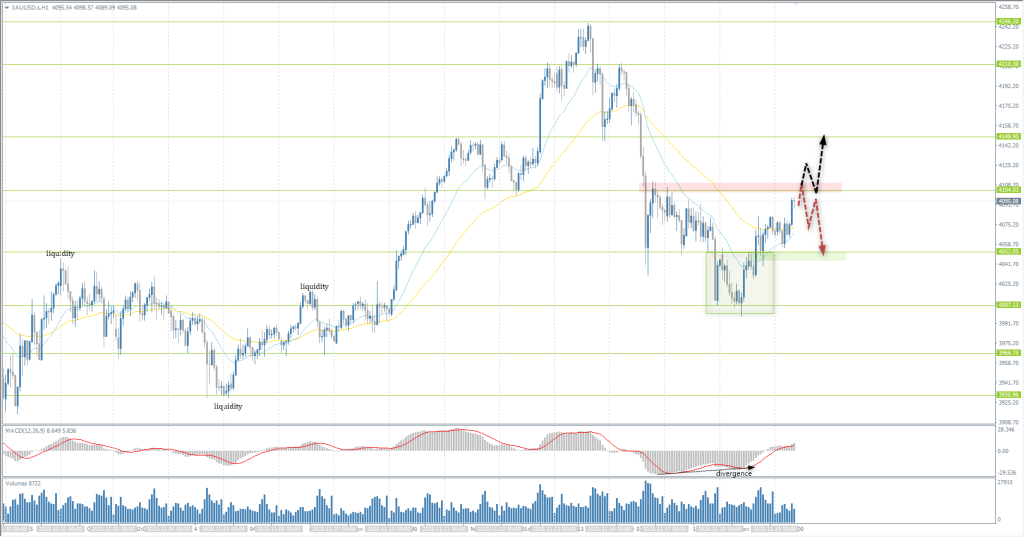 Buyers managed to keep the price above a round 4000 level. Moreover, the price impulsively consolidated above 4052, forming a “locked” balance below that level. Currently, accumulated liquidity is being redistributed toward the nearest resistance at 4104. A breakout of this level on impulse will open the path to 4148. If sellers react at 4104, intraday selling opportunities may appear.