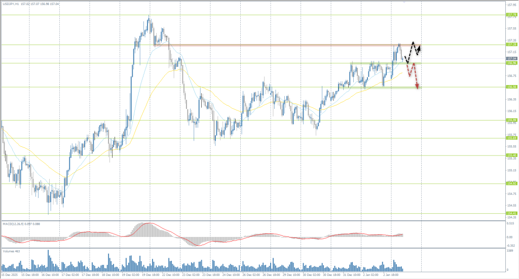 The yen continues to weaken against the dollar. Price reached the 157.28 resistance, where price action must be monitored. Consolidation above this level opens the way to 157.78. If sellers return the price below 156.96, intraday selling opportunities will open.