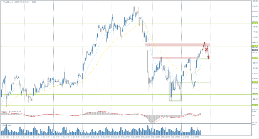 Gold has consolidated above 4400 and is now aiming for a test of the 4433 resistance. If sellers react there, the price will likely enter a range between 4400-4433. It is crucial for buyers to prevent the price from closing below 4400 again to avoid another sell-off.